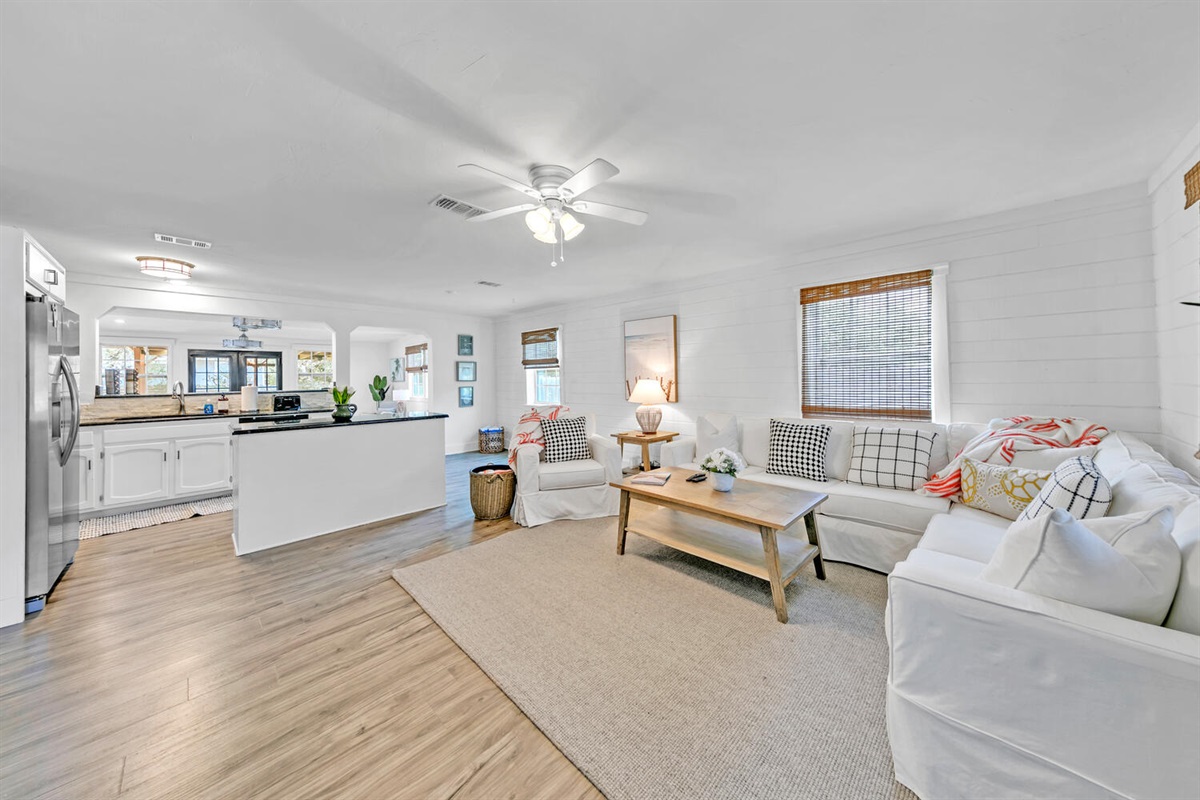 This light and bright open floor plan has the perfect amount of style and function. With room for 6, there is plenty of space to spread out and relax after a long day at the beach. With beach access only .6 miles away and Gulf Place only 1 mile away, you'll be in the heart of everything! The chef's delight kitchen features ample counter space and a large dining area that seats 6. Open to the cozy living area, there is no shortage of space for your group. The covered outdoor deck is a perfect place to retreat from the sun and enjoy the ocean breeze.